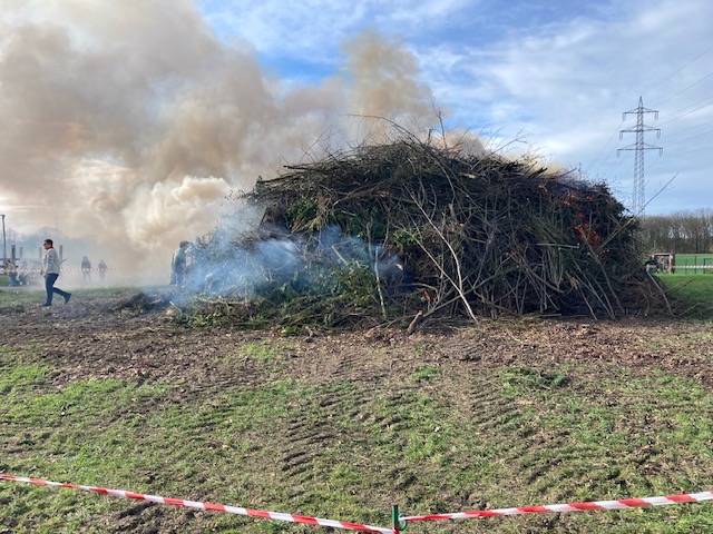 Doch mit Unterstützung eines Gasbrenners und eines Laubbläsers brannte es dann von allen Seiten.