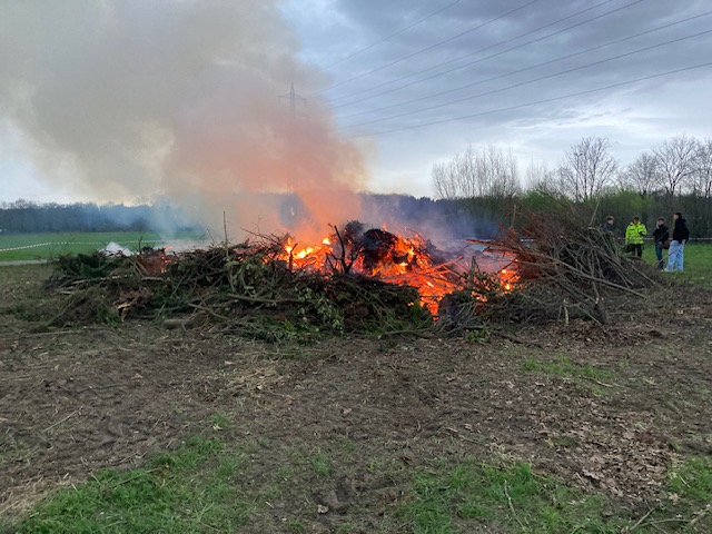 Die Sinsener Pfadfinder zündeten um etwa 16:30 mit einer Flamme von der Liebfrauen-Osterkerze den großen Holzhaufen an.