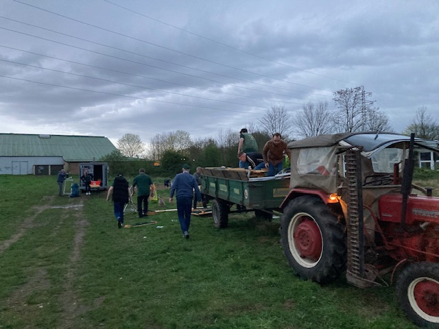 Auch das Feuer war niedergebrannt und so begann mit dem langsam beginnenden Regen das Aufräumen durch die fleißigen Helfer der Schützengilde.